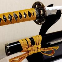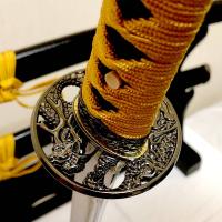 | この模造刀は刃物の本場、岐阜県関市で熟練の職人たちが1振り1振り丁寧に仕上げた逸品です。 関市は700有余年の伝統を持つ刃物のまち。 日本一の名刀の産地として関市は繁栄し、卓越した伝統技術が現代の刀匠や刃物産業に受け継がれてきました。 日本の美術刀剣は世界に誇れます。 こ の模造刀は誰でも ご購入し 所持することができます。 警察での講習や許可証などは 一切必要ありません。 模造刀は武器でなく、美術鑑賞用の装飾刀です。 真剣とは違い、物を切ったり刃を研磨することが出来ない構造になっています。 しかし日本刀の重厚感、刃の反りや輝きなど細部にこだわった逸品で愛好家にも高評価を得ています。 模造刀は部屋などに飾って置くには何ら問題ありませんが、 人を威嚇したりすると、銃刀法違反となりますのでご注意ください。 日本は刀剣ブームですが、海外でも侍ブーム・忍者ブームの影響で日本の刀は大人気。 外国人の男の子へのプレゼントに最適です! 素敵な日本刀は和風のインテリアとして好評です。 美術鑑賞用に客間に飾っても。コスプレ用にも。 合金製なので重厚感があり本物そっくりです。 強度に勝る亜鉛刀身 近藤 勇(1834〜1868) 天然理心流の剣士。1863年幕府の浪士隊に採用され、のち新撰組を結成、局長となった。 諸藩の倒幕志士を捕殺し、京都市中を監視した。 製造 日本製 岐阜県関市 小刀 全長 約70cm 刃渡45cm 柄長17.5cm 小刀(約)総重量685g 鞘払い535g 材質 刀身 亜鉛合金(クロムメッキ仕上げ) 柄 合成樹脂 合繊巻き 鞘 木製 鍔(つば) 合金製、象嵌風龍透かし鍔 美術観賞用の模造刀です。 写真に写っているスタンドは含まれません。 小刀のみの価格です。     |
