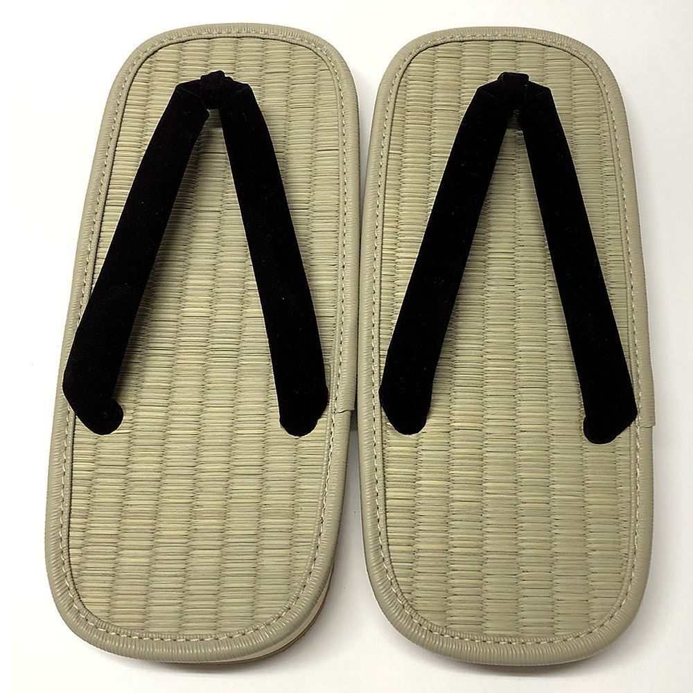 | たたみ草履(ぞうり)男物 2Lサイズ 全長 28cm 巾 11.5cm かかとの高さ 3cm 片足の重さ 160g 日本製 Made in Japan 畳いぐさ草履 イグサには消臭効果があり、湿度がある時に足にくっつかないので歩きやすい ベタベタせず、いつもサラッとしていてい草の香りに癒されます 足に汗をかく人はこの草履だと一年中快適にすごせます! 比べてください!畳いぐさの快適さ ビニール製の草履は足の裏に汗がまとわりつき、べたべたとして歩きにくいですが、この畳いぐさ草履は足裏がさらっとして快適です 浴衣や着物に 畳草履(男性用) 軽くて履き心地が良いです 足裏はさらっと快適! い草で足の裏を刺激すると土踏まずの形成・足の健康を促します 健康に良い畳草履(たたみぞうり) 草履の底は厚手のゴムでクッション性に優れ、 ゴム底の裏に凸凹があるので滑りにくくなっています 安全性にも配慮した草履 国産の畳草履です 国内製造で材料も国産の安心品質となります 職人の手で一つ一つ丁寧に作られた品質の良さが感じられる一足 どんな色柄の浴衣、着物にも合わせやすいシンプルなデザイン 夏祭りや花火大会の浴衣、甚平の際の履物に また、逆にジーパンなどの普段着に合わせても、おしゃれです 天然のい草でできており、足にやさしく、履き心地が快適で疲れにくい タタミ台ですので足裏に熱がたまらず、さらっとして涼しい履き心地 い草の優しい香りと踏み心地に癒されます 草履は足の指で鼻緒を挟むので、浮指防止、外反母趾の予防にも効果があります 幼いころから草履をはくと偏平足になりにくいとも言われています 新しい草履を履くと指の間が痛くなりがちですが、足に草履がなじむまでは足袋や足袋ソックスを着用すると痛みが軽減されます 日本のおみやげ、ホームステイのお土産として、外国人に喜ばれています 外国の方にも日本の文化を教えてあげましょう 「大きいサイズの草履のお話」 外国人は草履を履く時、大きいサイズの草履を好みます 本来、草履は踵(かかと)を出して、つっかっけるように履くのが正しい履き方と言われていますが… 踵を出すと歩きにくいと言うわけで、踵がすっぽり入る草履が外国人には好まれます 日本古来の履き方を無理に押し付ける必要もなく、楽しく着物を着て歩いてもらえれば良いと私は思っています そこで特大サイズの草履を作ってもらったところ、よく売れるようになりました 又、外国人だけでなく日本人の方も大きいサイズの草履を探していたようで、日本人にも大人気 日本人もサンダル感覚で草履を履く人が多くなったように感じます 日本人の体格も良くなり、大きいサイズの草履が必要とされる時代になったのではないでしょうか 日本の伝統を伝える和の履物、 畳草履は足を圧迫しないので健康に良く、 畳の感触が心地よい履物です。 外国人向けの大きなサイズの草履まで取り揃えているので 外国人への贈り物にも最適です。 It is light and you feel very comfortable. Zori is a Japanese traditional footwear. You can feel that you are walking on top of Tatami. Tatami is a very comfortable mat in Japan. By wearing this zori, you may add additional japanese style to your yukata, kimono or samue.  |