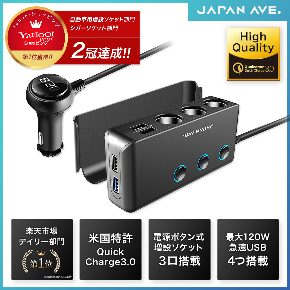 (メモ:カーチャージャー USB quick charge 3.0 シガーソケット 増設 3連 急速充電 シガー ソケット Quick Charge カーチャージャー qc 3.0 充電器 車 USB 充電 車載 JAPAN AVE 電源 延長)