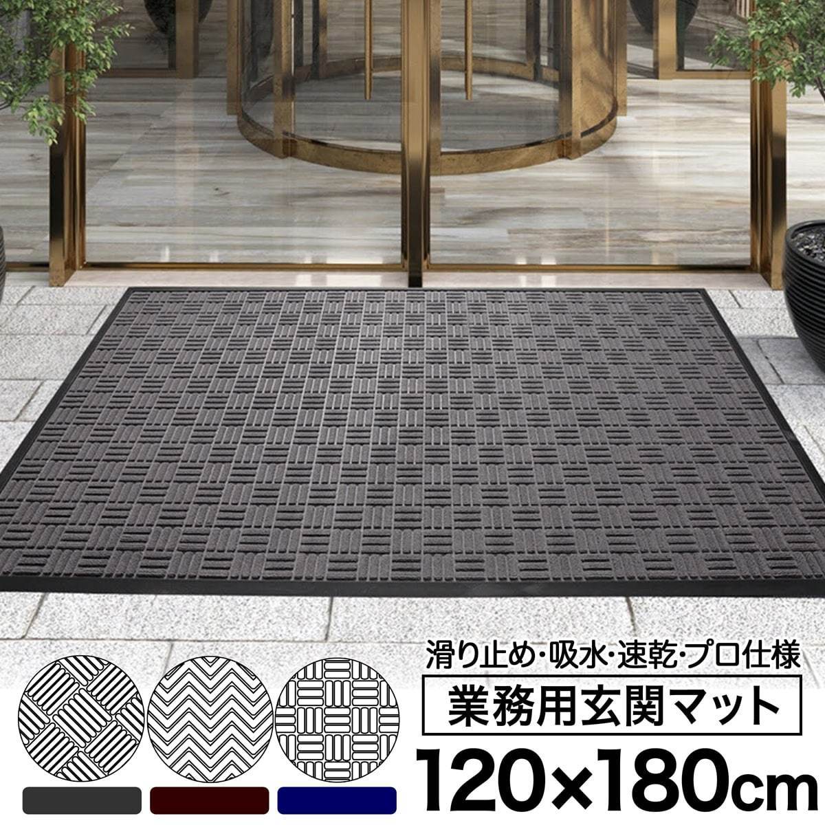 | 商品説明 | オフィス・店舗の"顔"。 出入り口を清潔に保つ業務用玄関マット。 ▼▼ここがポイント▼▼ 【玄関をいつでも清潔に】 シンプルさと機能性を持ち合わせた玄関マット。 病院や薬局、レストランなどクリーンに保ちたい玄関にもおすすめです。 【凹凸加工の立体設計】 優れた除塵効果で細かい泥や砂、埃を落とし室内への侵入を防ぎます。 払うだけで簡単に汚れが落ちるのもお手入れが楽なポイント。 【安全性・機能性に優れた三層構造】 除塵仕様……凹凸加工で細かい泥や埃の侵入を防ぎます。 安全接着……引火の心配のない不燃性の熱圧接着ホットメルトを使用。 滑り止め……裏全面に薄く優れた柔軟性の滑り止めゴム加工を施してあります。 【移動やお手入れもらくらく】 優れた柔軟性と軽量設計で移動も楽に行なえます。 丸洗いができるので気軽にお手入れすることが可能です。 【選べる3デザイン】 3デザインからカラーをお選びすることができます。 ◆Aタイプ:グレー/ブラウン/ブルー ◆Bタイプ:グレー/ブラウン ◆Cタイプ:グレー/ブルー | |