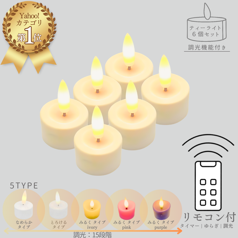 ・本物のキャンドルのようにやさしく揺れるLEDティーライトキャンドル6個セット