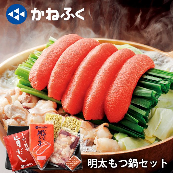 ●商品内容/明太もつ鍋セット(ミックス牛もつ300g、ほぐし明太子300g、特製旨だし濃縮400g、ちゃんぽん麺180g×2、唐辛子5g)