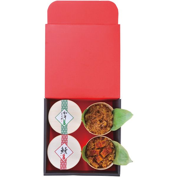 ●商品内容/うなぎおこわ(国産うなぎ使用)・黒毛和牛しぐれ煮おこわ各110g×各2(計4個入)、山椒×2