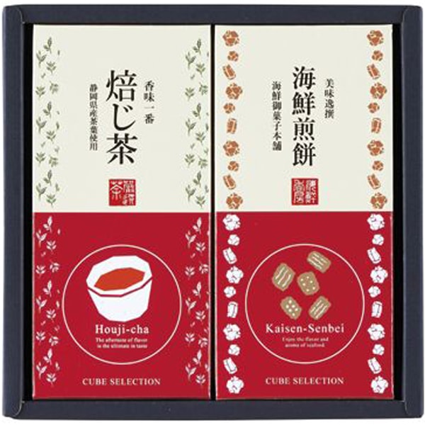 甘香ばしいほうじ茶や、煎茶とお茶請けの詰め合わせです。お茶は茶処静岡より丹精込めてお送りします。コロンと可愛いキューブ型。開けたらワクワク楽しいパッケージです。