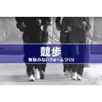 ☆ムダのない走りをつくるために欠かせない競歩練習。肩、腰、ひざを一直線にして軸を意識します。