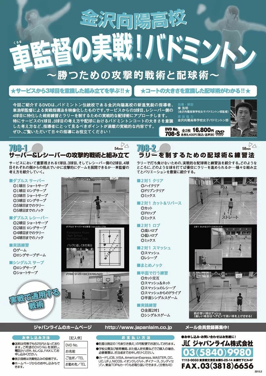 今回ご紹介するDVDは、バドミントン伝統校である金沢向陽高校の新進気鋭の指導者、車浩明監督による実戦指導法を映像化したものです。