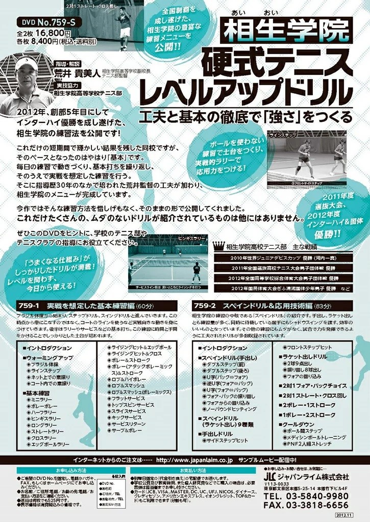 これだけたくさんの、ムダのないドリルが紹介されているものは他にはありません。ぜひこのDVDをヒントに、学校のテニス部やテニスクラブの指導にお役立てください。