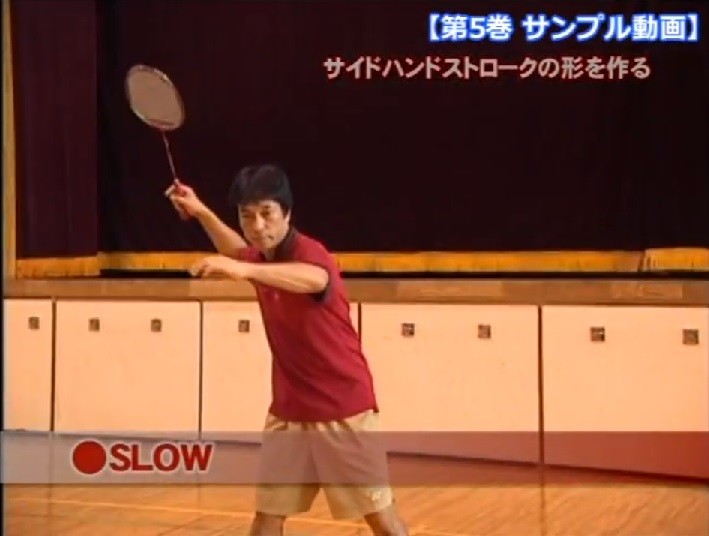 ■サイドハンドストロークからハイクリアーへの導き方◎サイドハンドストロークの形を作る