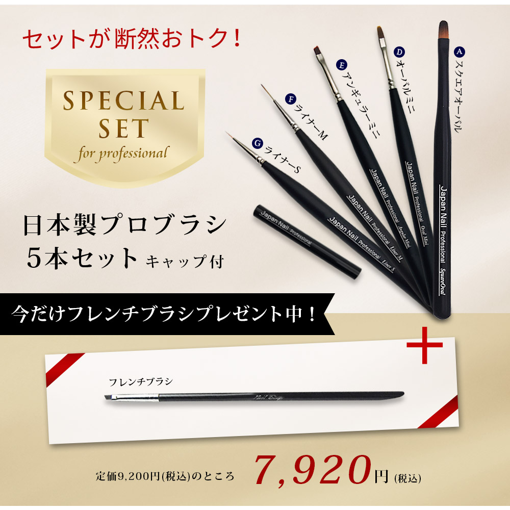 日本製プロブラシ5本セットキャップ付 今だけフレンチブラシプレゼント中!