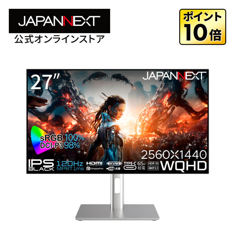 JAPANNEXT 27インチ IPS BLACKパネル搭載 120Hz対応 WQHD(2560x1440)解像度 ゲーミングモニター JN-27iB120Q-H-C6 HDMI DP USB Type-C ジャパンネクスト