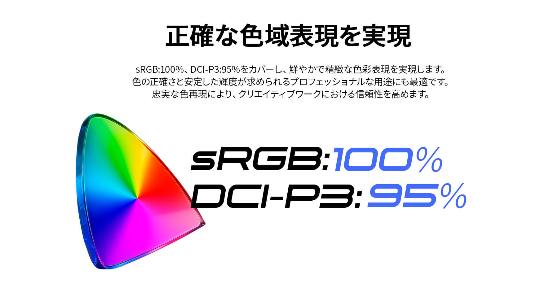 表示色:10.7億sRGB100%DCI-P395%