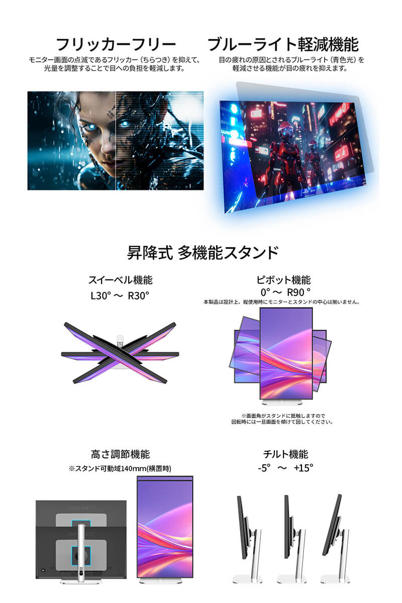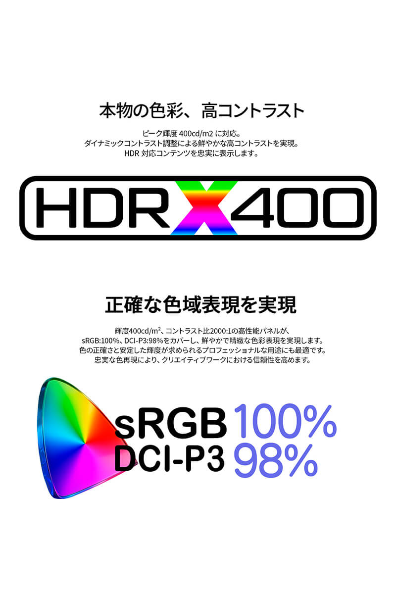 表示色:10.7億 sRGB:100% DCI-P3:98%