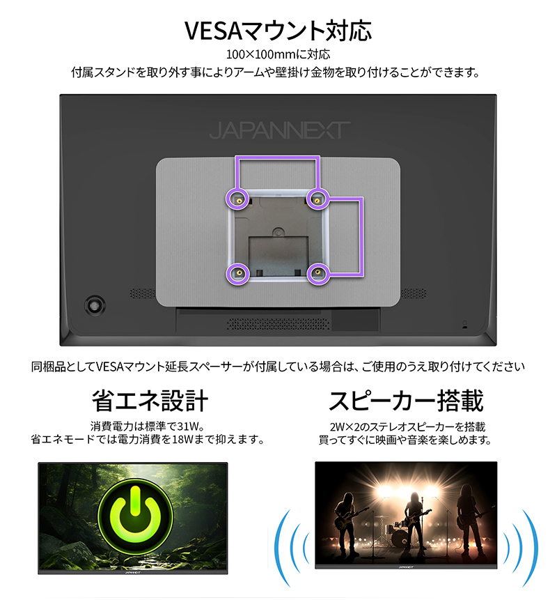 消費電力:最大38W 通常31W 省エネ18W スタンバイ0.5WUSB-C 給電使用時 最大103W