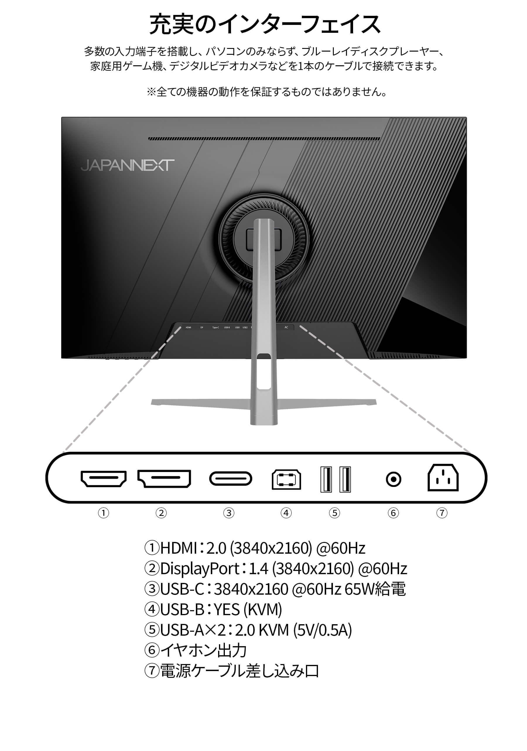 USB-C:3.1 (3840x2160) @60Hz 65W給電