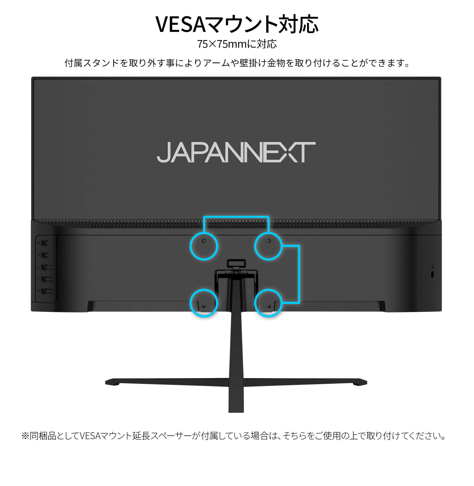 VESAマウント:75x75mm(M4x7mm)