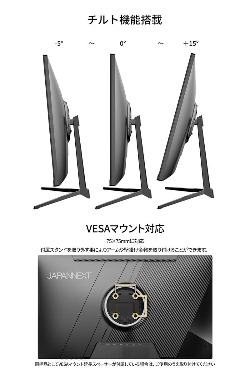 VESAマウント:75x75mm(M4x7mm)