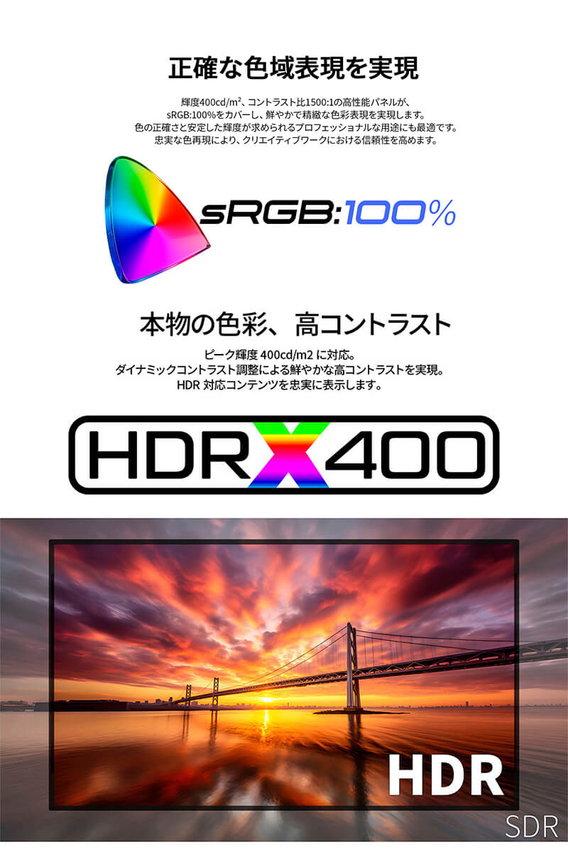 HDR:YES(HDR400相当)HDMI/DisplayPort/USB-C