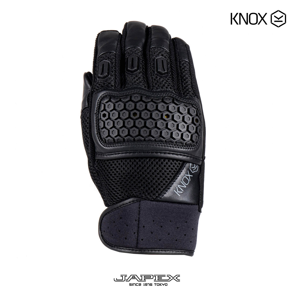こぶし部分には、MICRO-LOCK技術を使ったハニカム構造ナックルプロテクターを搭載、衝撃を吸収します。MICRO-LOCKとはKNOXが独自開発した衝撃吸収素材で、普段は柔らかく衝撃時に固くなる(LOCKする)のが特徴。