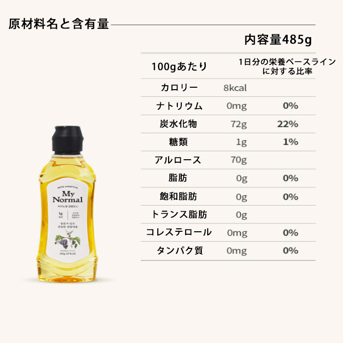 日本国内から発送【カズレーザーと学ぶ】で紹介 アルロース シロップ 485g 甘い物を我慢せず痩せる!! ダイエットの常識激変 糖なのに血糖値を抑制する糖 0カロリー 糖類0g マイノーマル 砂糖代替え品 甘味料 希少糖 当日発送 韓国産