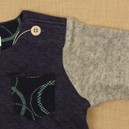 パンプルムース Pample Mousse 身頃がキルティングのトレーナー。ポケットの配色部分がポイントになっています。日本製。