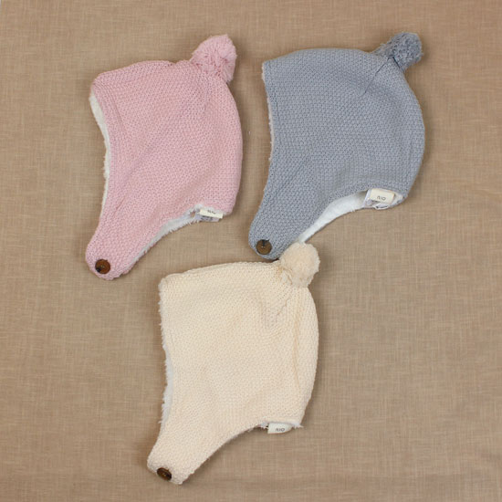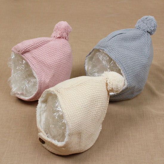 ニット小人帽子 裏ボア 耳当てつき ピンク ブルー アイボリー ベビー 赤ちゃん ギフト プレゼント リオRIO S.T.クローゼット S.T.CLOSET