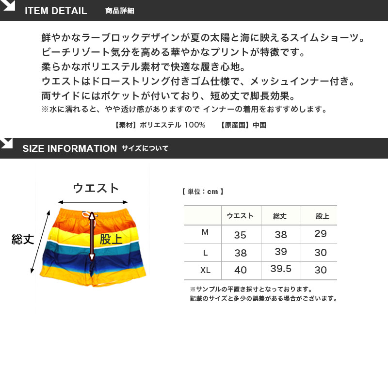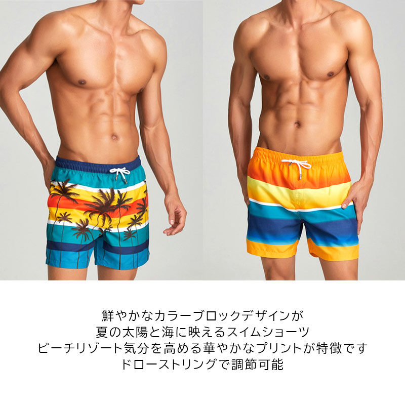 鮮やかなカラーブロックデザインが夏の太陽と海に映えるスイムショーツ。