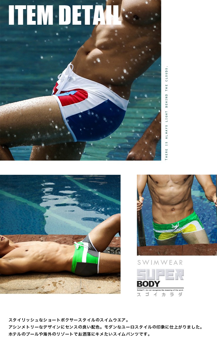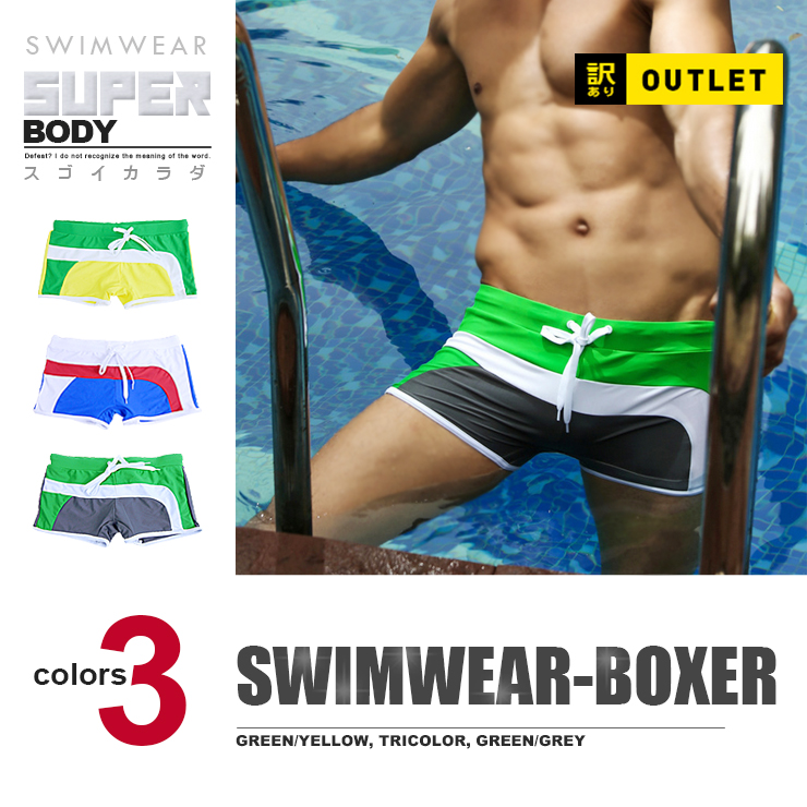 【訳あり】スイムボクサー ユーロスタイル トリコロールカラー 競パン ボックス型 ローライズ スイムウェア メンズ
