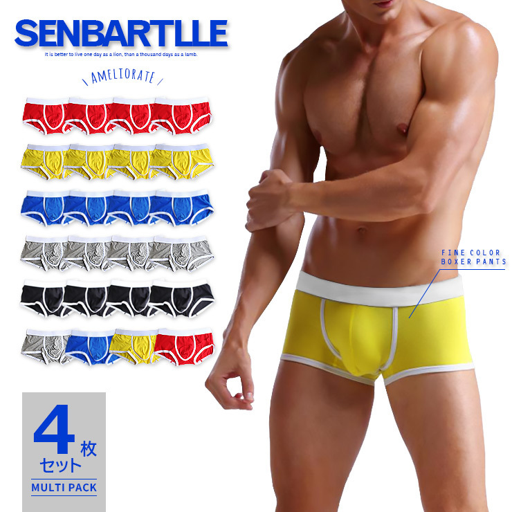 4枚セット SENBARTLLE アミリオレイト ローライズボクサーパンツ メンズ ローライズボクサー M-XL