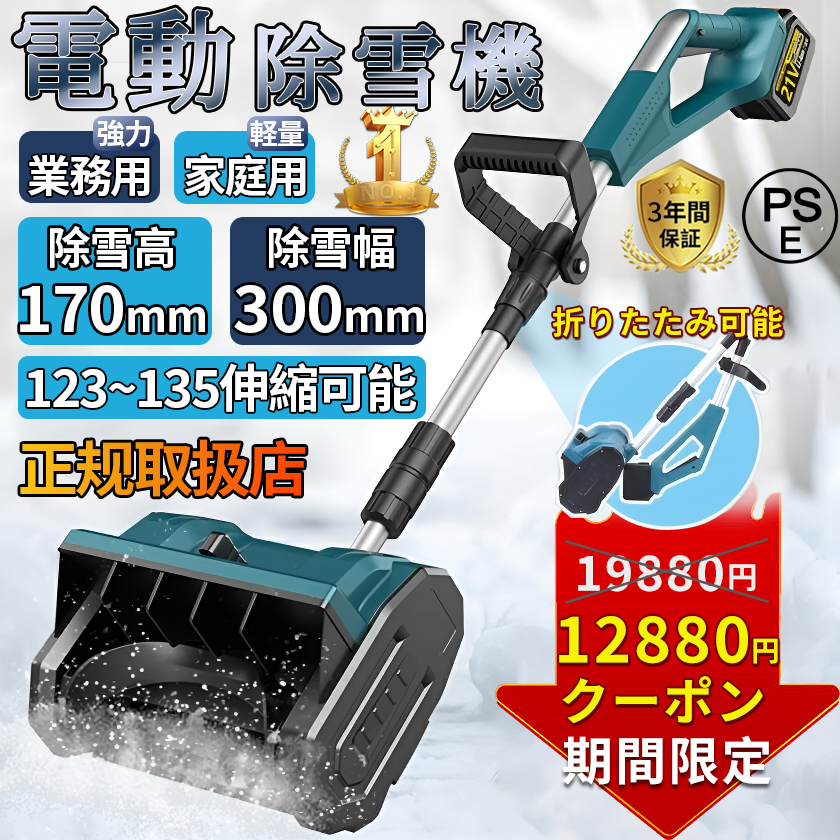 電動除雪機には4.0 Ahの大容量バッテリーが搭載されています。高性能バッテリーにより、長時間の作業が可能で、一回の充電で最大30分間稼働します。これにより、柔軟性が向上し、頻繁な充電が不要になり、ユーザーにとってより便利です。