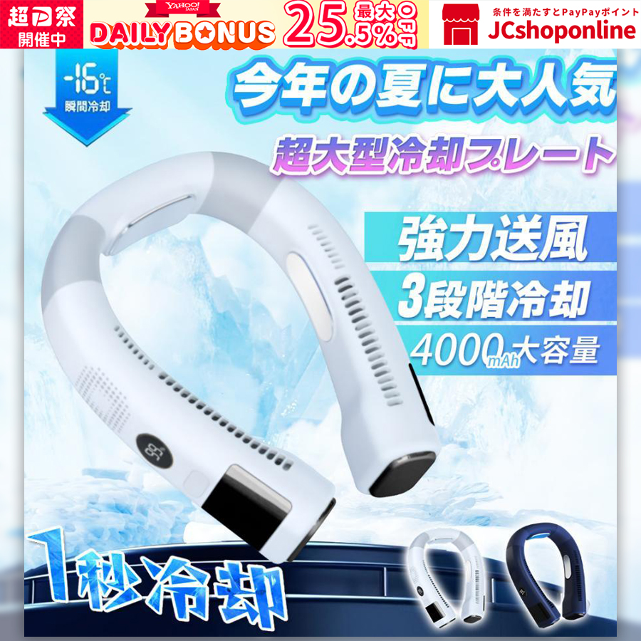 首掛け扇風機 ネッククーラー 羽なし軽量 扇風機 瞬間冷却 最強 冷却 静音 2秒冷却プレート 3段階風量 4000mAh大容量 風向自由調節 携帯扇風機 熱中症対策