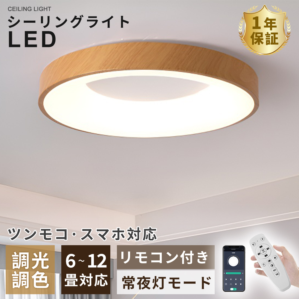 シーリングライト led 8畳 12畳 おしゃれ led洋室 北欧 木目調 間接照明 天井照明 照明器具 リモコン付き 調光 省エネ 和室 丸型 居間ライト リビング 工事不要