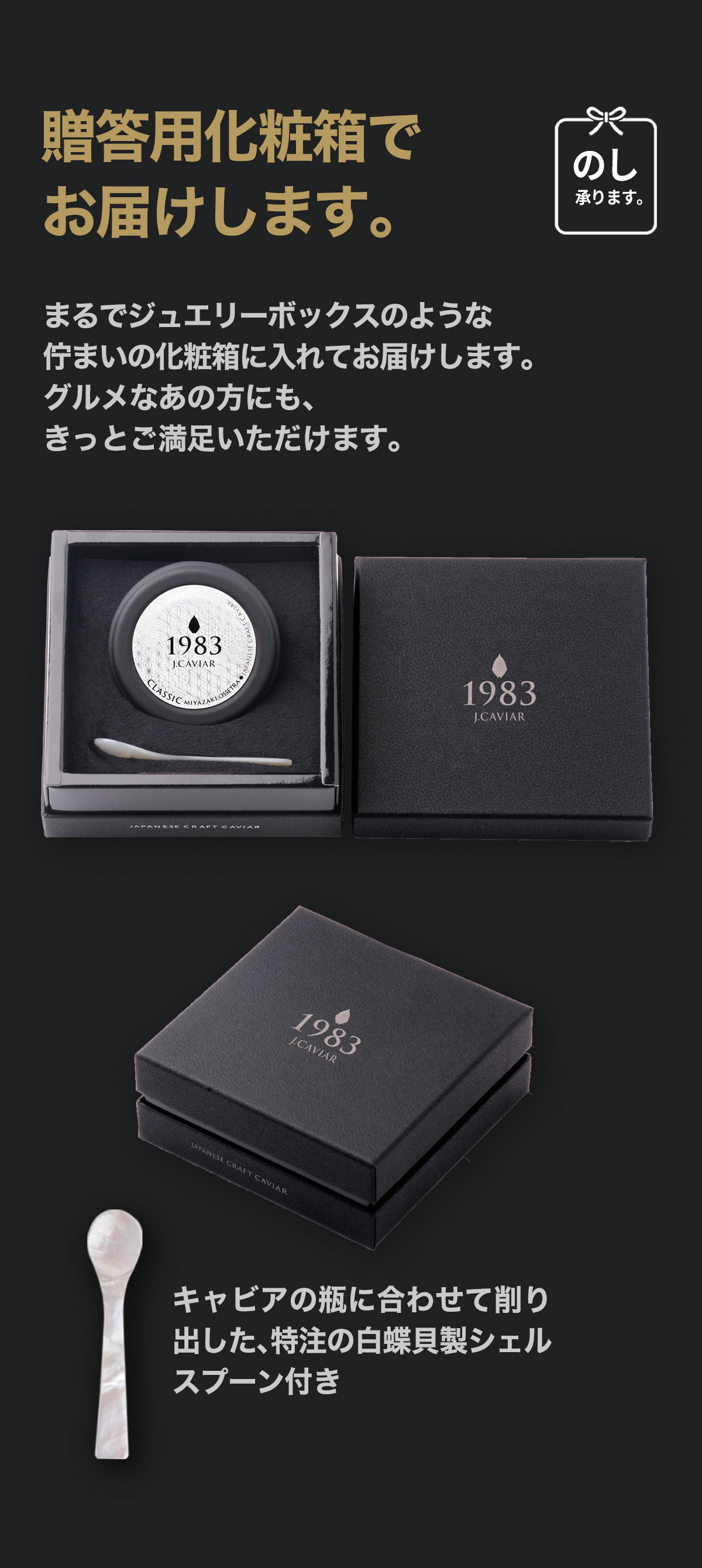 | 商品名 | 宮崎キャビア1983 オシェトラ クラシック (20g) | 贈答用化粧箱入り |
