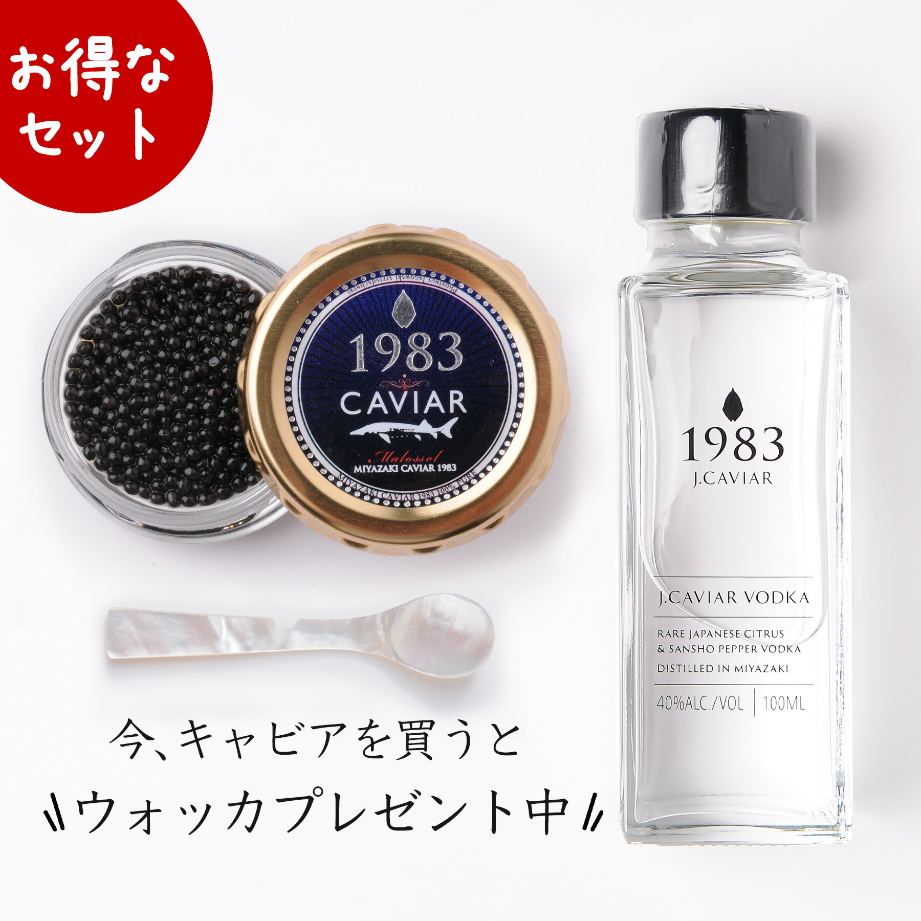 | 商品名 | 宮崎キャビア1983(20g)とJ.CAVIARウォッカ100mlセット |