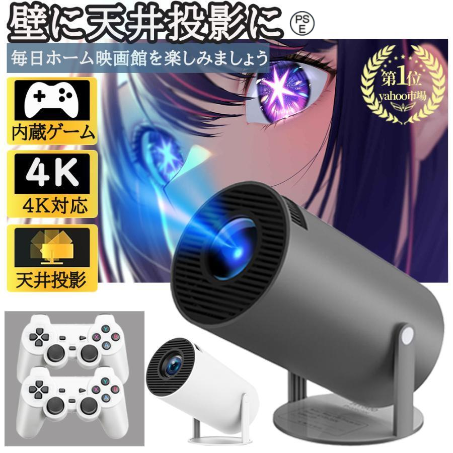 プロジェクター 天井投影 本体 小型 家庭用 4K対応 高輝度 自動補正 Android TV11.0 5G WiFi6 Bluetooth5.2 スピーカー