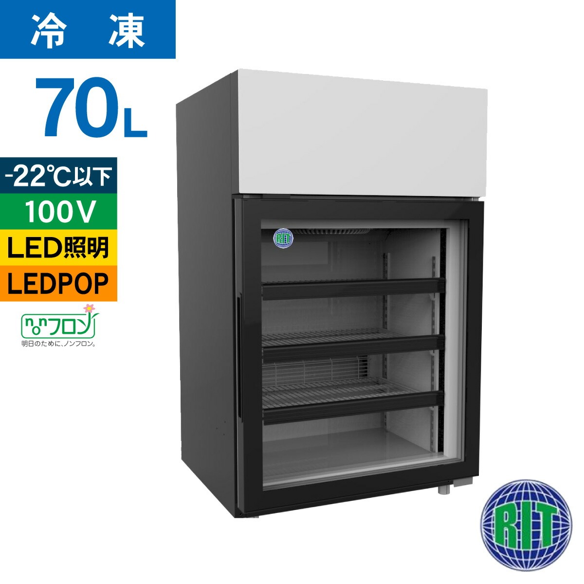 レビュー特典 RIT JCM 卓上型冷凍 ショーケース RITCS-70H ジェーシーエム 業務用 冷凍庫 小型 前開き ブラック 黒 レジ横 カウンター 70L ノンフロン 結露対策
