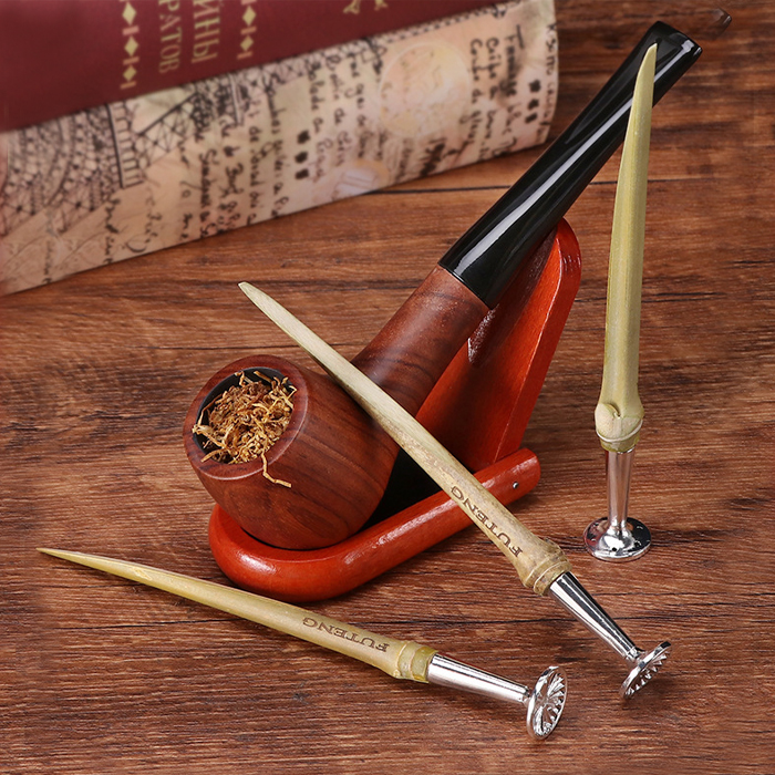竹の部分は、火皿の中をきれいにするためのスクレーパーやピックとして、喫煙後のパイプのメンテナンスに使用できます。
