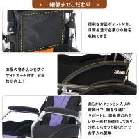 【移乗しやすい設計&便利機能】アームレストは上に持ち上げて開閉可能で移乗がスムーズ、2段階調節可能なフットサポート、安全ベルト、背面収納ポケットなど細部にも配慮。
