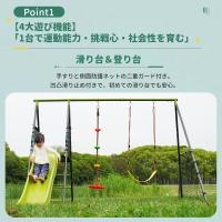 ◎01公園が遠い・外遊び不足を解決!自宅で楽しむ【多機能ブランコセット】お子様の安全を最優先に考えた頑丈な三角形構造と地釘でしっかり固定されているので、元気に遊んでも安定感は抜群です。1台でさまざまな遊びが楽しめ、子どもの好奇心を刺激して、毎日新しい発見が生まれます。遊びながら成長できる、家族みんなに笑顔が広がる時間をお届けします。