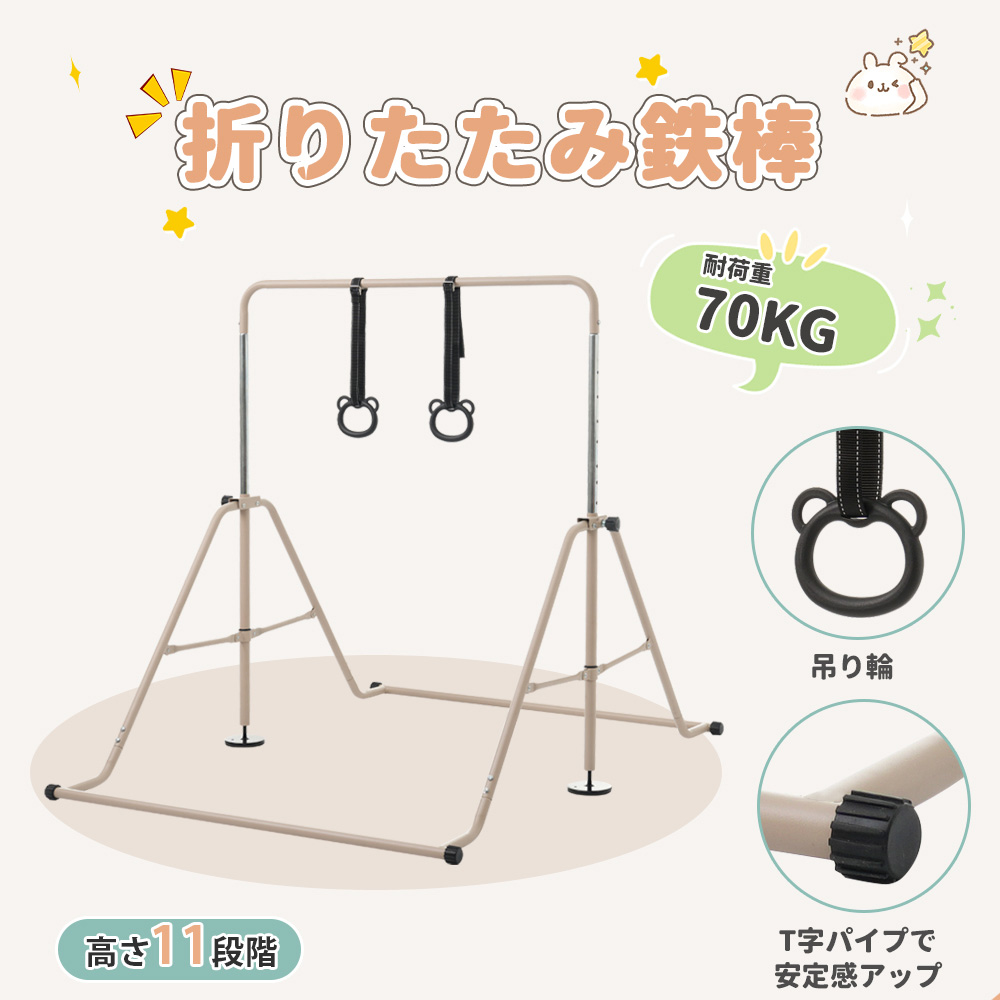 子供用鉄棒 11段階調節 鉄棒 室内 屋外 てつぼう さか上がり 折りたたみ式 吊り輪付き アジャスタ一付き