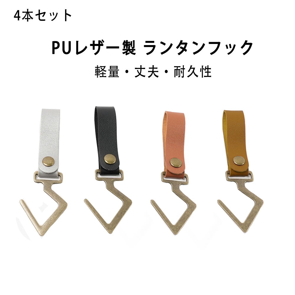 PUレザー製 ランタンフック 4本セット 金属 フック キャンプ アウトドア ハンガー 吊り下げ S字フック ライト 調理器具 キッチン 野外 収納 整理