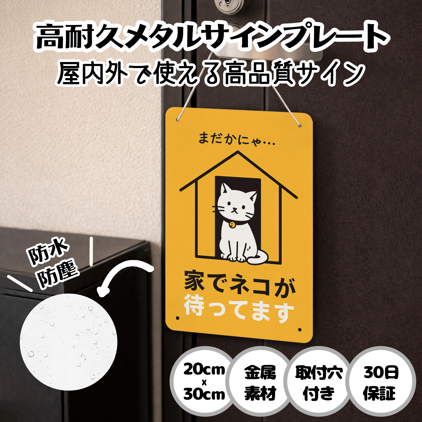 家でネコが待ってます 自宅の猫ちゃん 面白い 車 壁 ポーチなどに最適 おもしろ 猫グッズ おしゃれ かわいい 猫ライフ サインプレート プレート表示板 日本製