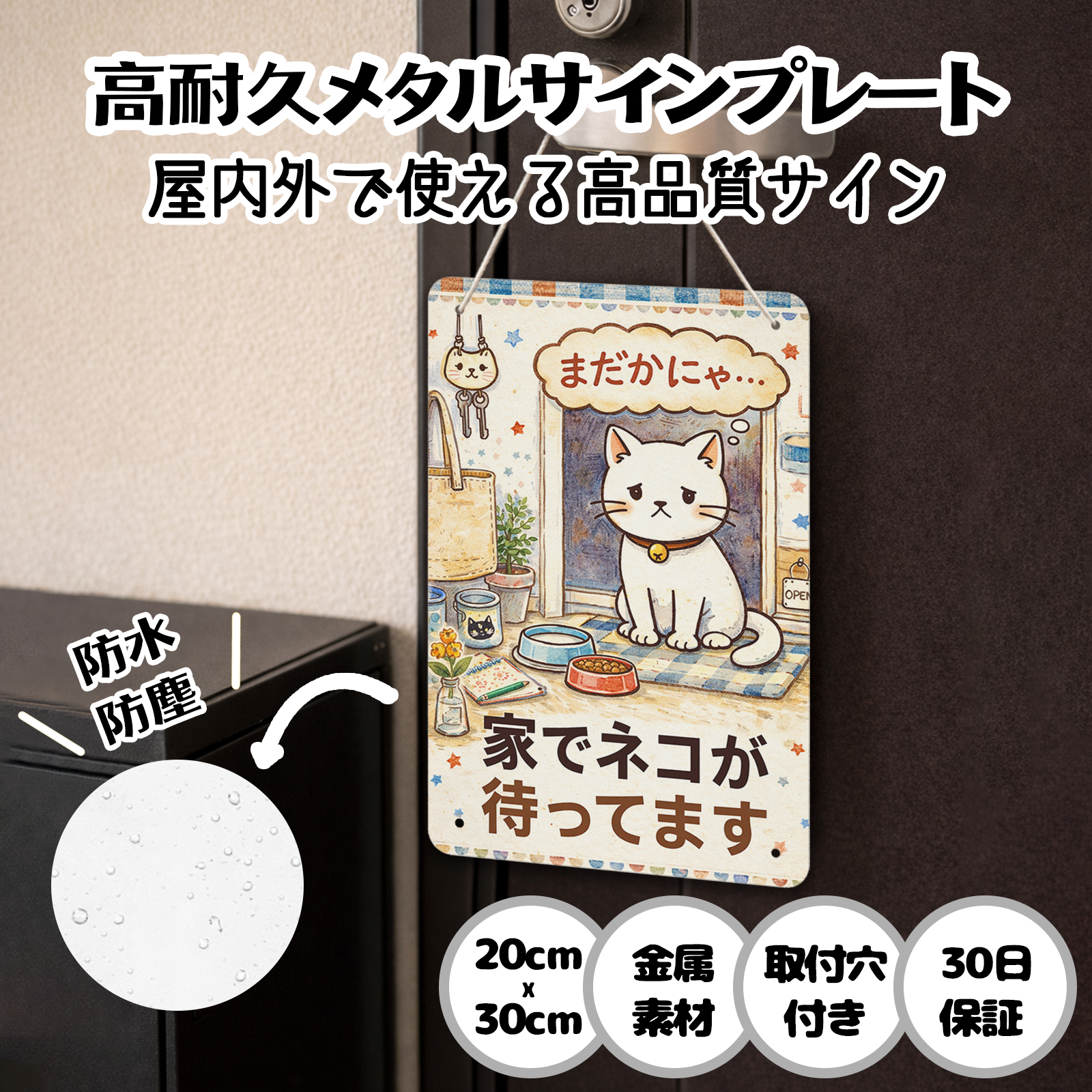 家でネコが待ってます 自宅の猫ちゃん 面白い 車 壁 ポーチなどに最適 おもしろ 猫グッズ おしゃれ かわいい 猫ライフ サインプレート プレート表示板 日本製