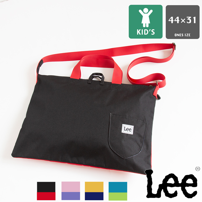 | Leeロゴとバイカラーが可愛いレッスンバッグ。B4サイズも入る、ややゆったりめサイズで、教科書やノートもすっぽり入る収納力。トートバッグとしても、ショルダーバッグとしても使える2way仕様で、荷物のかさばる通園や通学にぴったりです。中吊りのインナーポケットは、小物類も入れられて便利なデザイン。教室の机にかけるときは、机用のフックにひっかければ、バッグの底が床につかず、清潔に使用できます。 |