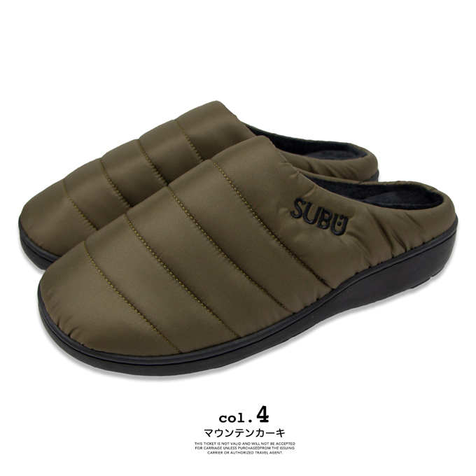 | 寒い時期、ふと出掛ける時に素足で履ける、いままでにない秋冬のサンダル。 ダウンのような暖かさで素足をつつみ込み、起毛加工の内側の生地と4層構造のインソールが、足全体に抜群のフィット感を生み出し、優しい履き心地をつくりだします。 近所へ買い物に行ったり、ゴミ出しや車へ何か物を取りに行くなど、すぐに家に戻るのに、寒い外で普通のサンダルや素足はとても苦痛。そのような時、SUBUは寒い冬でも暖かく足を包み込み、裸足のままでも外に快適に出る事ができます。 4層のインソールは家でのリラックス以上の気持ち良さをあなたにもたらしてくれます。 【保存・お手入れ方法】 ・ブラシで汚れを落としてください。甲皮の汚れを落とすときは、ぬるま湯に薄めた中性洗剤で拭いた後、水で濡らした布で十分に拭き取ってください。 乾燥する際は、日陰で乾燥させてください。洗濯機のご使用はお避けください。 |