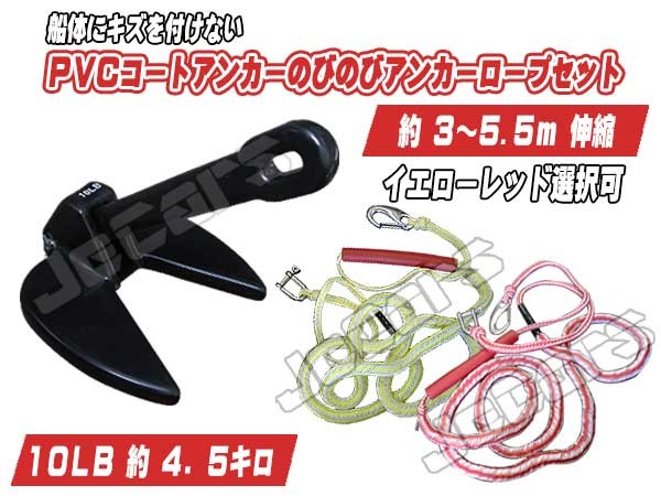 | セット内容 | PVCコート アンカー本体1個 10LB(約4.5キロ) のびのびアンカーロープ1個 伸縮 約 3m〜5.5m | |