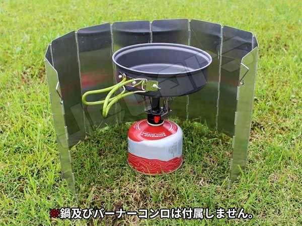 商 品 詳 細 | アウトドア アルミ製 ウインドスクリーン 折り畳み式 10枚プレート 防風板 風除板 収納袋付き 軽量、コンパクトな10枚プレートのウィンドスクリーンです。 屋外でシングルバーナー、コンロなどを使用する際に、 風を防ぎ熱効率がアップします。 また器具の大きさに合わせて枚数を 調整できますので自在に使い分けが可能です。 持ち運びに便利な収納袋付き! |
