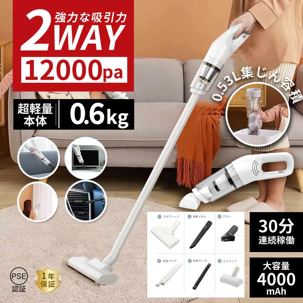 掃除機 コードレス 充電式 サイクロン式 強力吸引 軽量 小型 2WAY ハンディクリーナー 多機能 強力 12000pa USB充電式 乾湿両用 車用掃除機 省エネ 一人暮らし