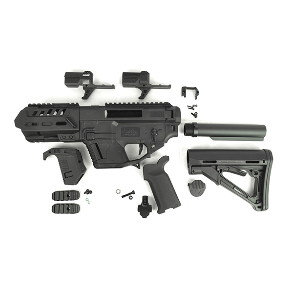 AR15系を意識したデザインとなっており、ストック及びグリップはAR15系のパーツを装着可能。