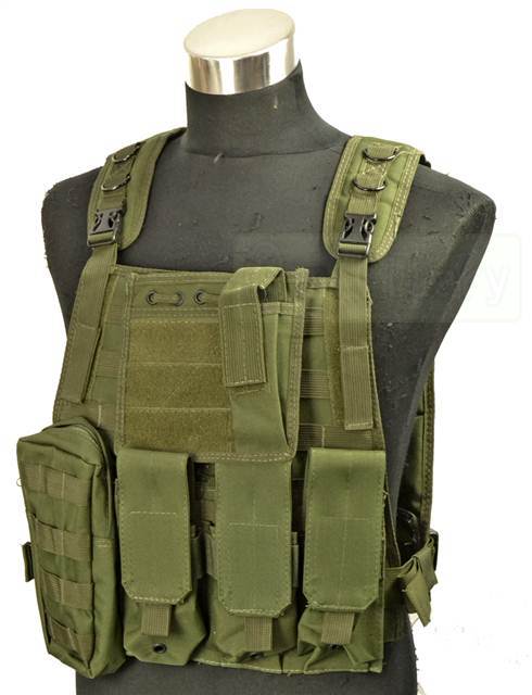 MOLLEウェビングによる拡張性の高さと、肩部のバックルによる着脱のし易さが大きな特徴です。