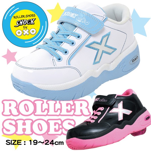 ローラーシューズ キッズ スニーカー 子供 靴 白 黒 ホワイト ブラック ピンク 水色 取り外し SHOCK SW 019